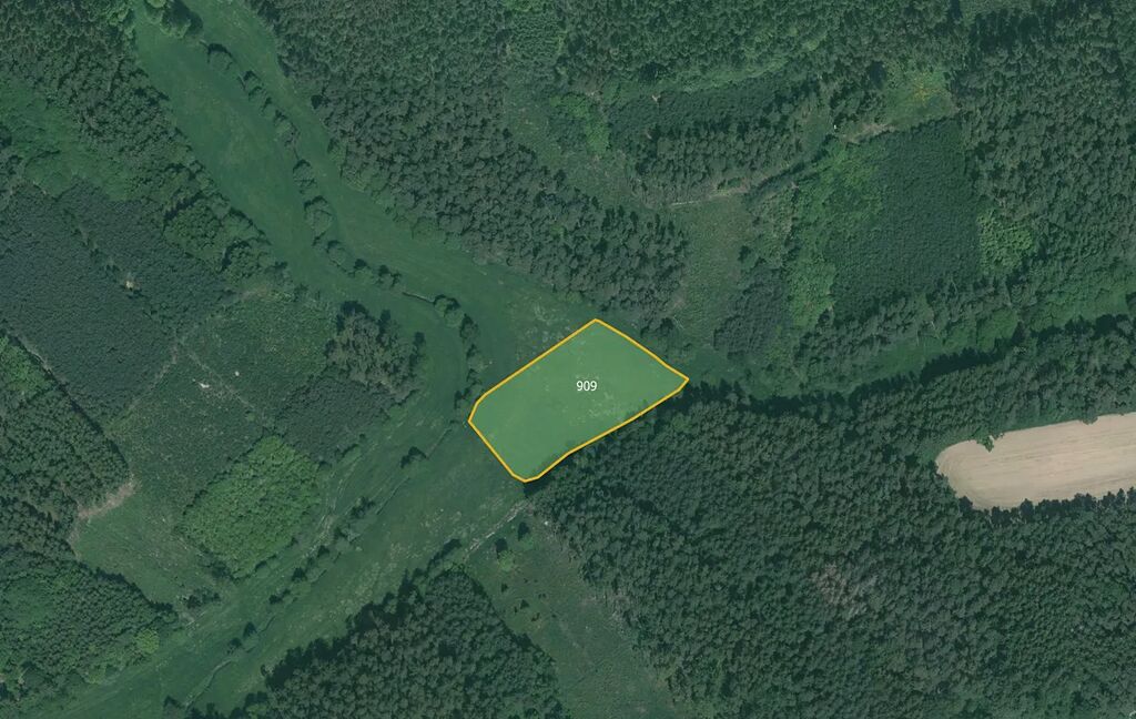 - parcela č. 909 – trvalý travní porost, podíl 2/3 z 5 567 m² (k prodeji 3 711 m²)