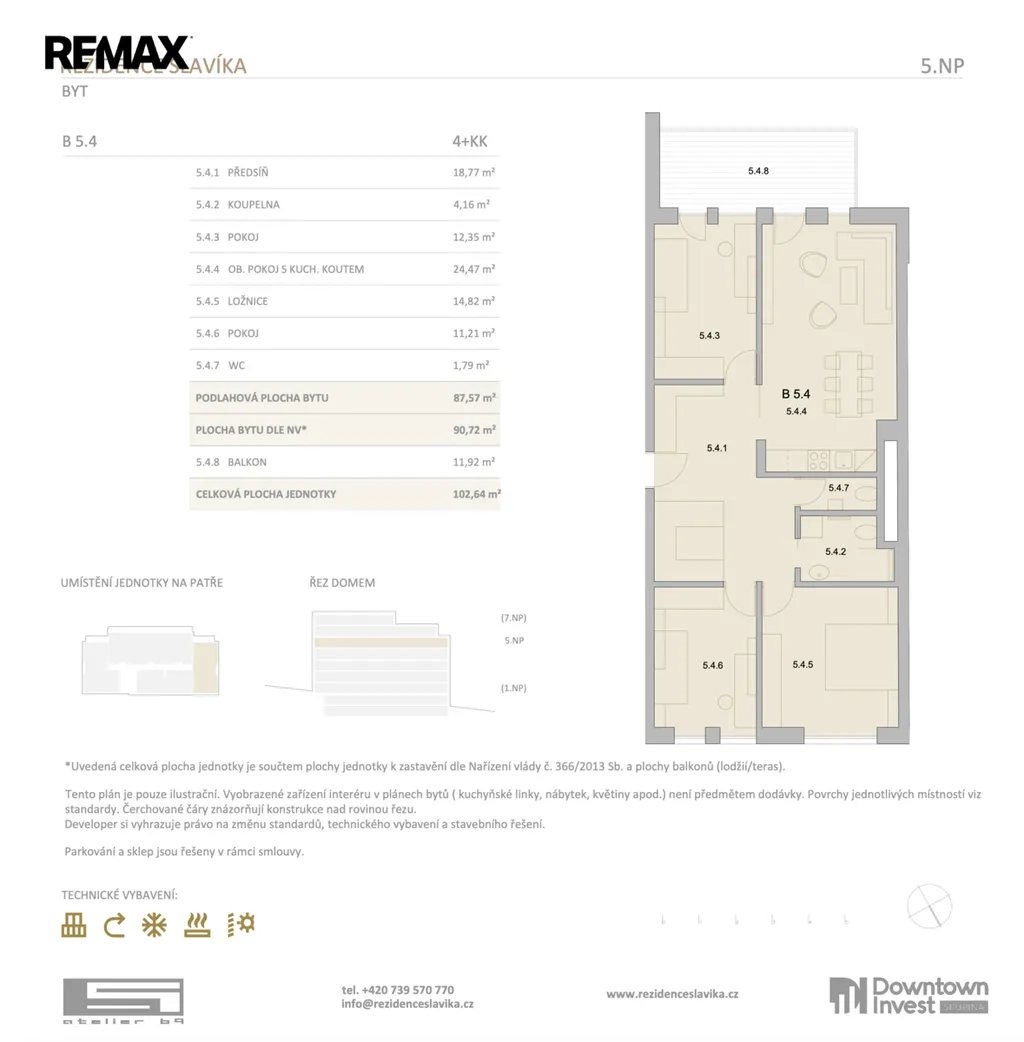 Byt B 5.4. se skládá z předsíně s možností vestavěných skříní , koupelny se sprchovým koutem, toaletou ,
