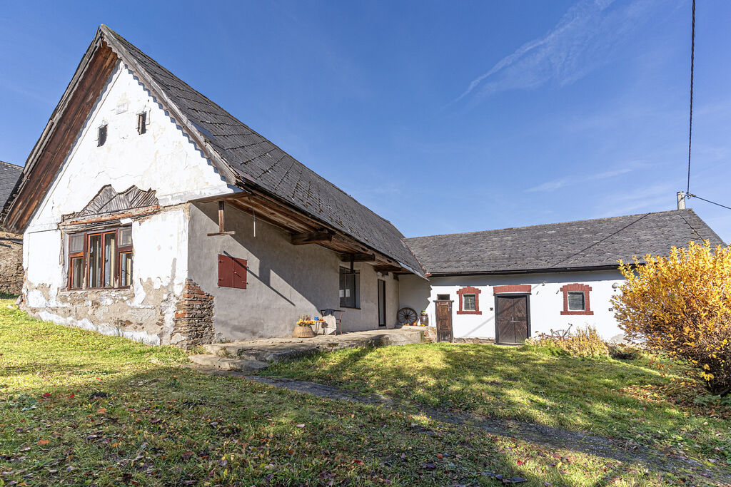 Dům má sice duši starých časů a čeká na rekonstrukci, ale nabízí nekonečný potenciál – pro mladou rodinu, víkendové útěky z města, nebo klidný domov s výhledem do zeleně.