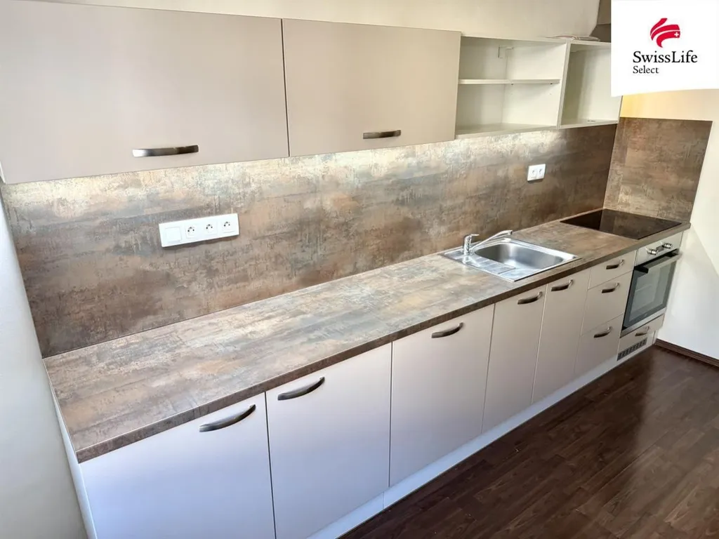 Byt je tvořen kuchyní, ložnicí, předsíní a koupelnou se sprchovým koutem a toaletou. Náleží k němu také sklep. Pronajímán je nevybavený pouze s kuchyňskou linkou (varná deska, trouba, myčka nádobí, digestoř) a vestavěnou skříní v předsíní.