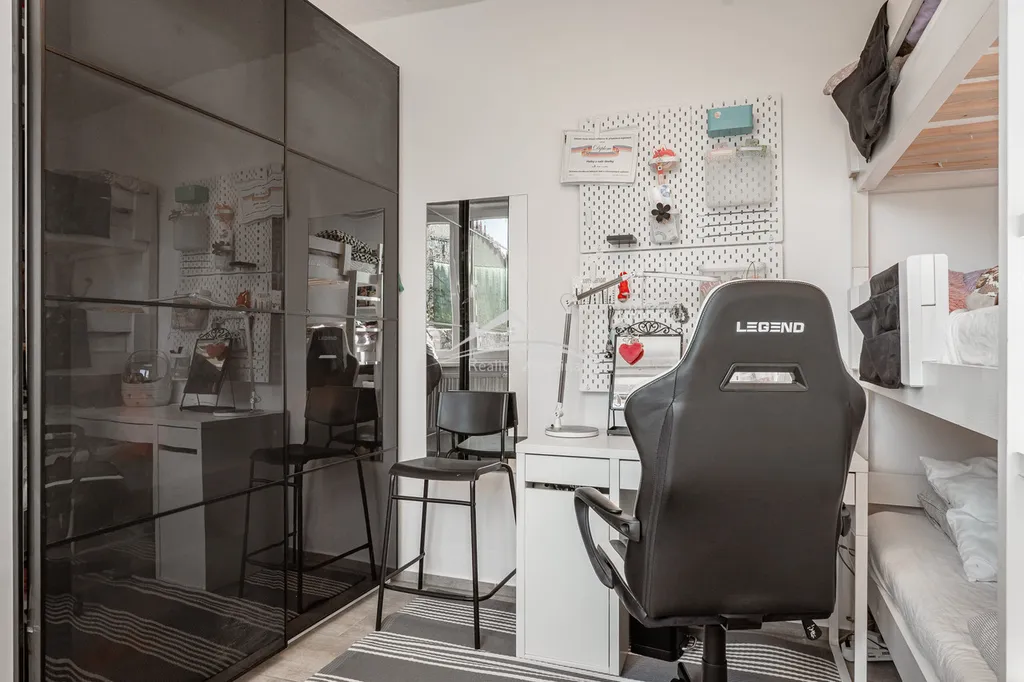 Součástí nemovitosti je také rozsáhlá samostatná a plně vybavená dílna o užitné ploše přibližně 100 m², která představuje velkou přidanou hodnotu pro podnikání, servisní činnost nebo technické hobby. Dílna je zateplená, vytápěná, má vlastní elektroměr a připojení 220/380 V, což umožňuje provoz energeticky náročnějších strojů. Je vybavena hydraulickým zvedákem, díky čemuž se výborně hodí pro autoservis nebo podobné řemeslo. Nechybí zde sociální zázemí, samostatná kancelář vhodná pro administrativu či zákaznické zázemí, dále sklad, půda na uložení materiálu a příprava na další koupelnu, což rozšiřuje možnosti budoucího využití. Před dílnou se rozkládá velká vydlážděná plocha, ideální pro parkování více vozidel, manipulaci s materiálem či skladování. Přístup je komfortní díky vysokým posuvným vratům s výškou 330 cm, která umožňují bezproblémový vjezd dodávek i větších vozidel včetně obytných aut.