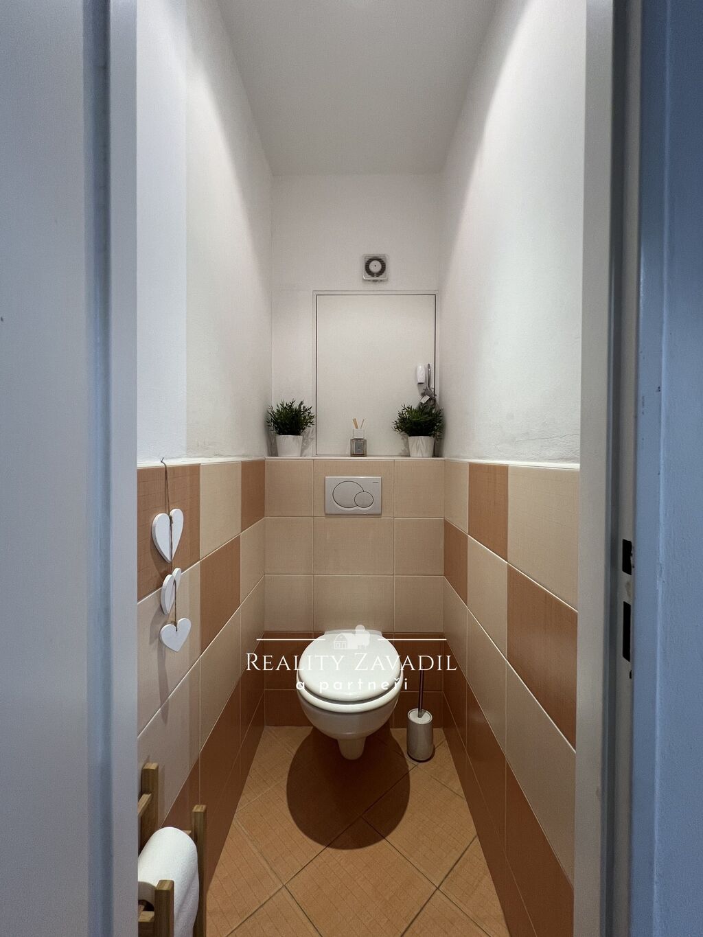 Po vstupu do bytu se ocitnete v prostorné chodbě, odkud se pohodlně dostanete do všech místností. Po pravé straně najdete komoru, která nabízí dostatek úložného prostoru. Po levé straně je situována samostatná toaleta