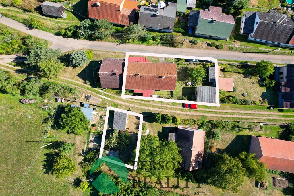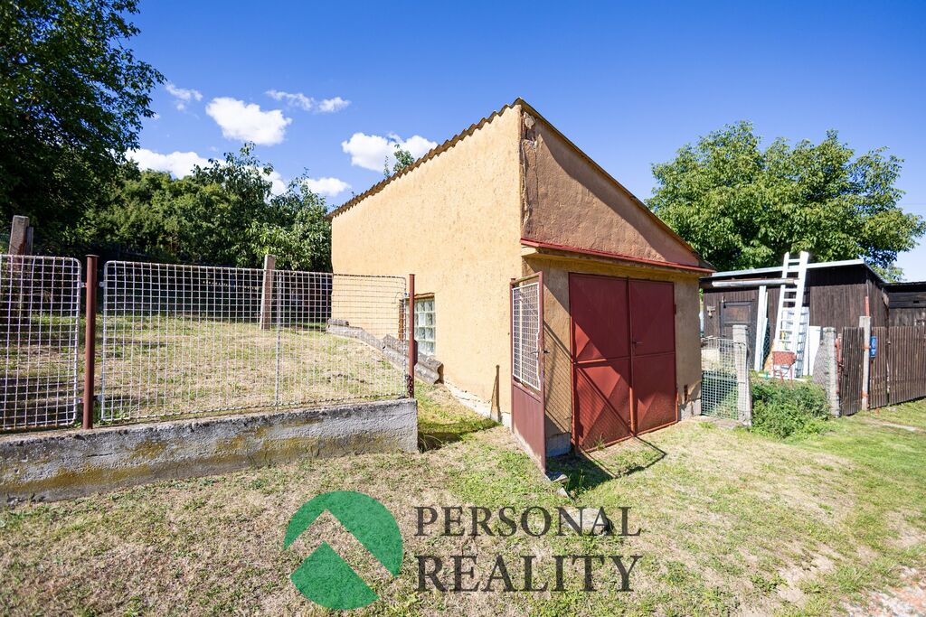 Naproti zahradě je další oplocený pozemek s garáží se zastavěnou plochou 21 m2. Součástí prodeje je i pozemek o výměře 277 m2 u nedalekého pole.