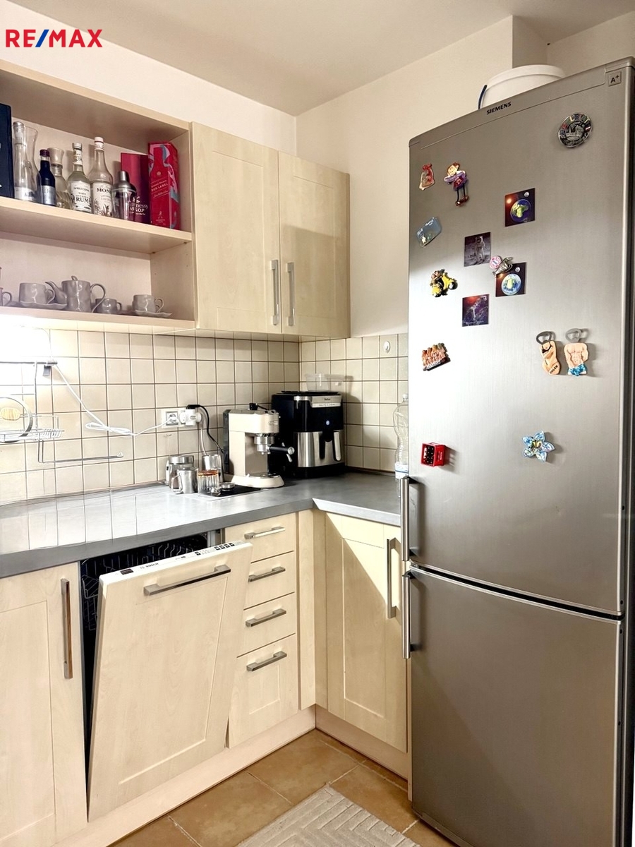 - Dispozice: byt 2+kk (obývací pokoj s kuchyňským koutem, ložnice, koupelna, předsíň). K bytu patří sklep