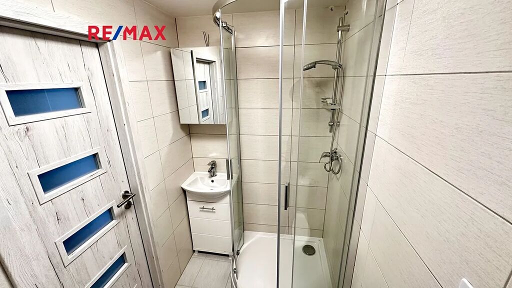 Dispozice bytu nabídne vstupní chodbu, obytný prostor s kuchyňským koutem, koupelnu se sprchovým koutem a toaletou. Součástí vybavení je pračka. Byt prošel kompletní rekonstrukcí – nová kuchyňská linka, podlahy, koupelna i lodžie. K bytu náleží komora u stupu do bytu.