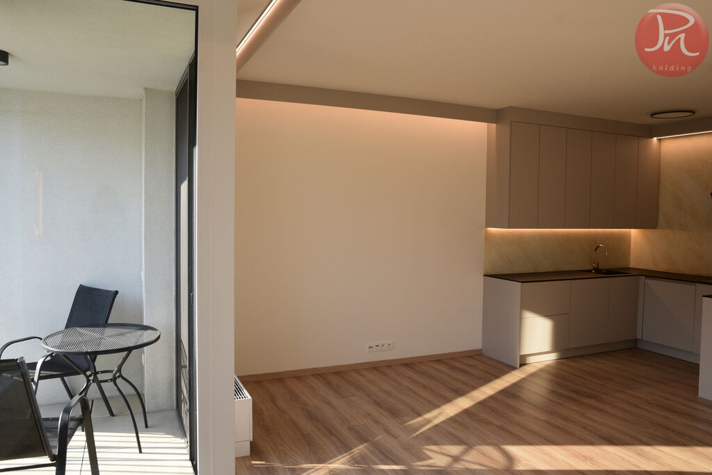 Interiér je světlý, prostorný a navržený s důrazem na moderní design, eleganci a funkčnost. Byt je vhodný pro jednotlivce nebo pár, kteří hledají vysoce komfortní a reprezentativní bydlení v samém centru dění.