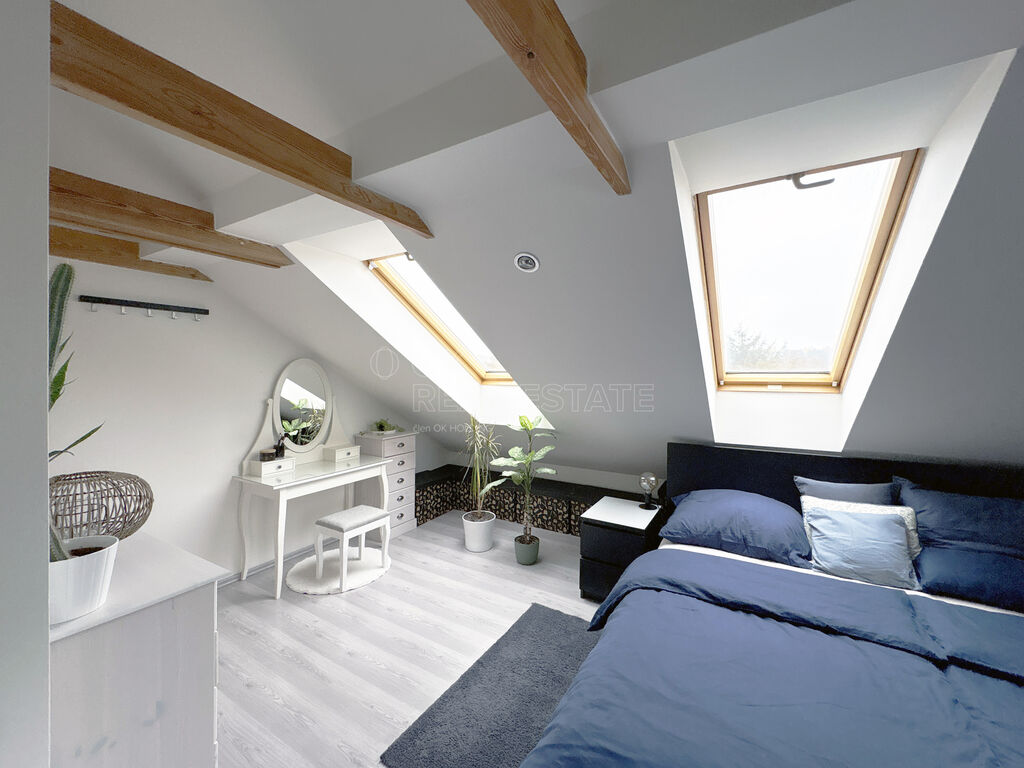 Dům je umístěn v zatepleném dvoupodlažním objektu s novými plastovými okny. Rodiny ocení mezonetové uspořádání bytu, které nabízí dostatek prostoru pro pohodlné bydlení. V přízemí se nachází světlý obývací pokoj s krbovými kamny, které vytvoří příjemnou atmosféru v chladných měsících, dále plně vybavená kuchyň, prostorný jídelní kout i koupelna s wc. V patře bytu se nachází dva samostatné pokoje, které jsou využívány jako dětský pokoj a ložnice. Dále je na patře prostorné wc, které je zároveň používané jako prádelna.
