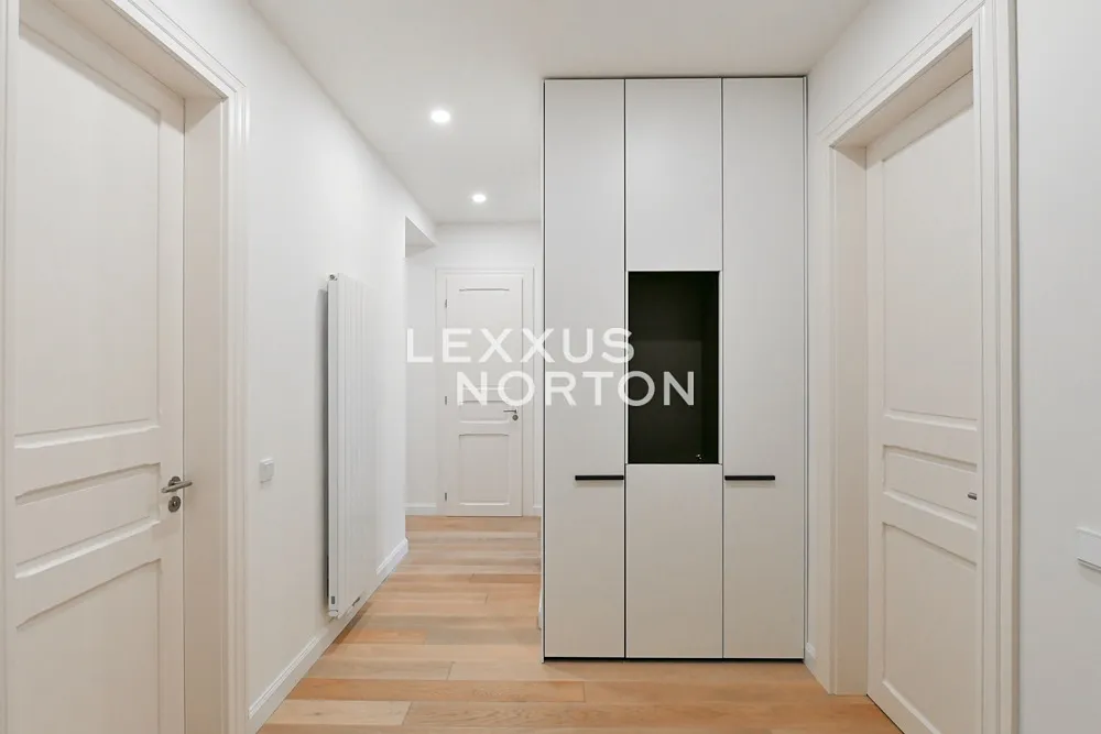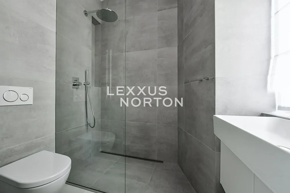 Byt je vybaven kvalitními dubovými podlahami a nabízí vestavěné skříně, klimatizaci, vinotéku, pračku i sušičku. 2 koupelna disponující sprchovým koutem.