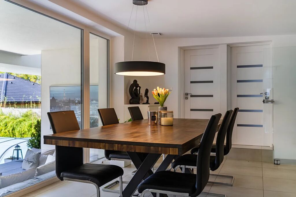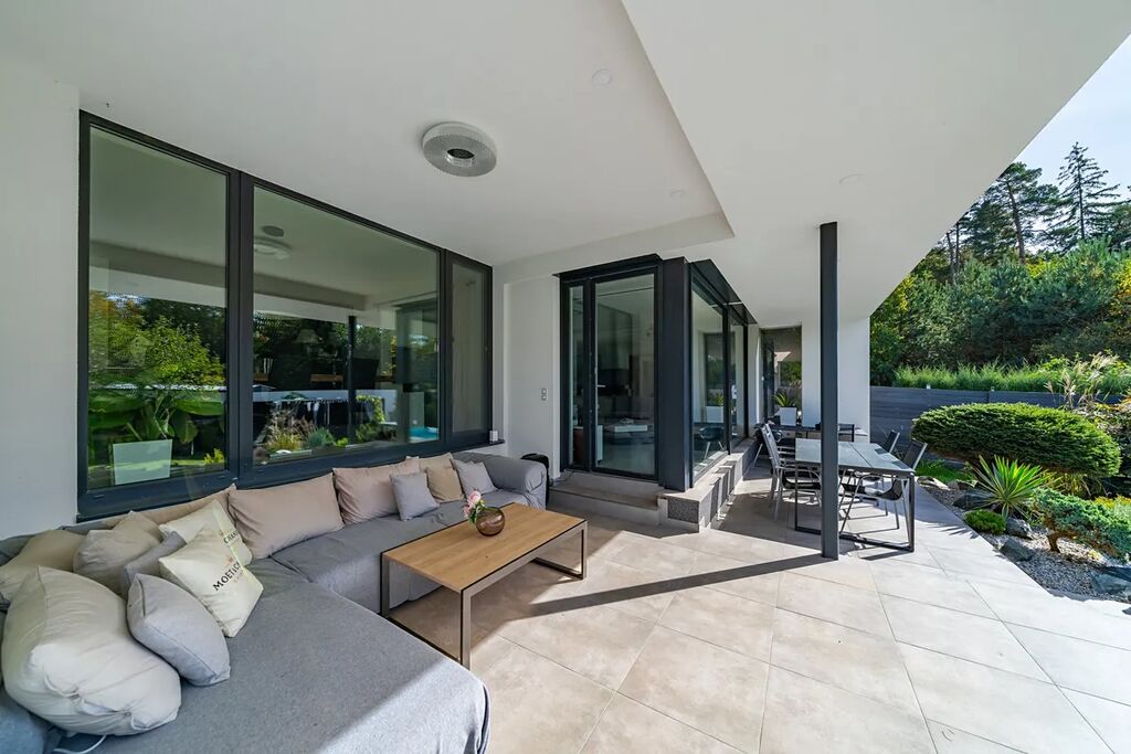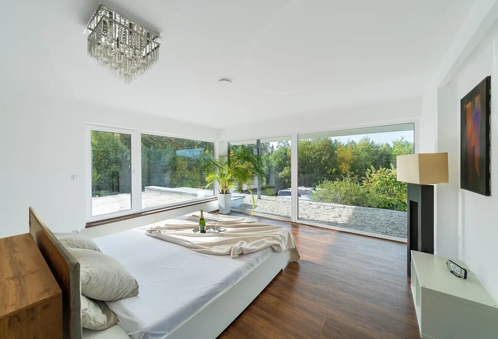 Už při příjezdu vás uchvátí architektura v moderním španělském stylu, která působí noblesně a přitom lehce – přesně jako domy v částech Evropy, kde se klade důraz na detail, harmonii a propojení s přírodou. Vila stojí na rozlehlém pozemku přímo u lesa, takže každý den začíná v naprostém klidu a končí pocitem, že jste na své soukromé dovolené.