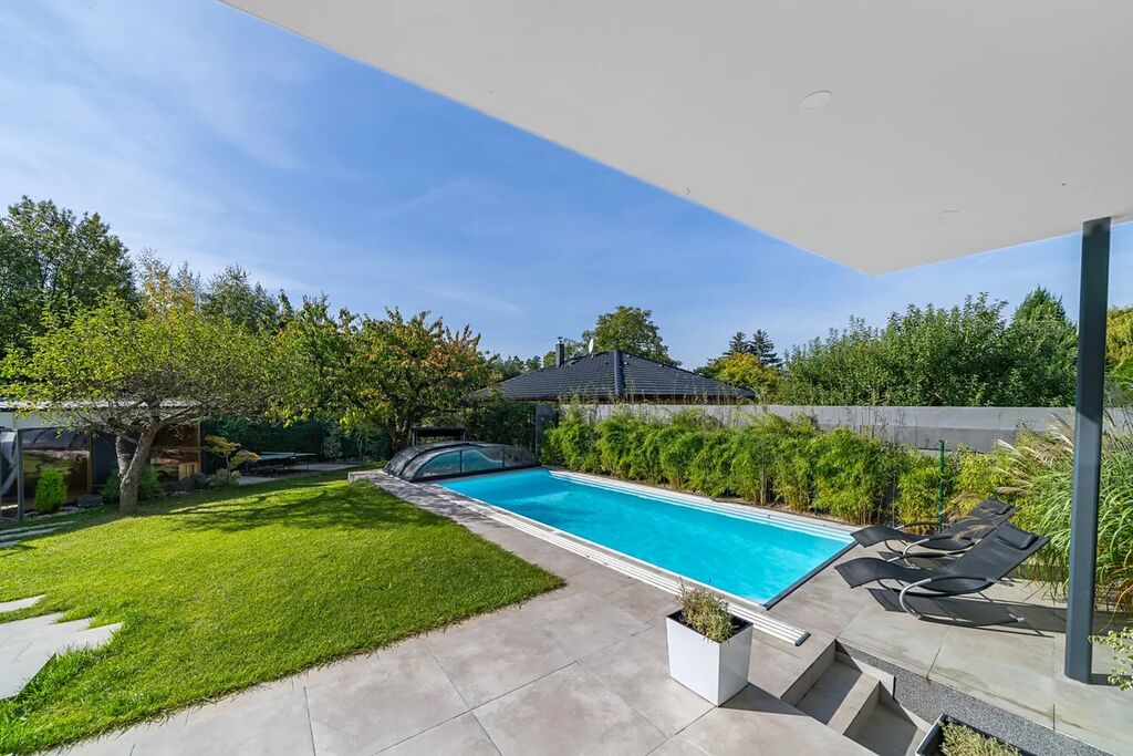 Interiér i exteriér jsou promyšlené tak, aby nabízely pohodlí a luxus pro náročné. K dispozici máte bazén, vířivku, saunu i velkorysé venkovní prostory, ideální pro relax nebo stylové letní večery s rodinou a přáteli.