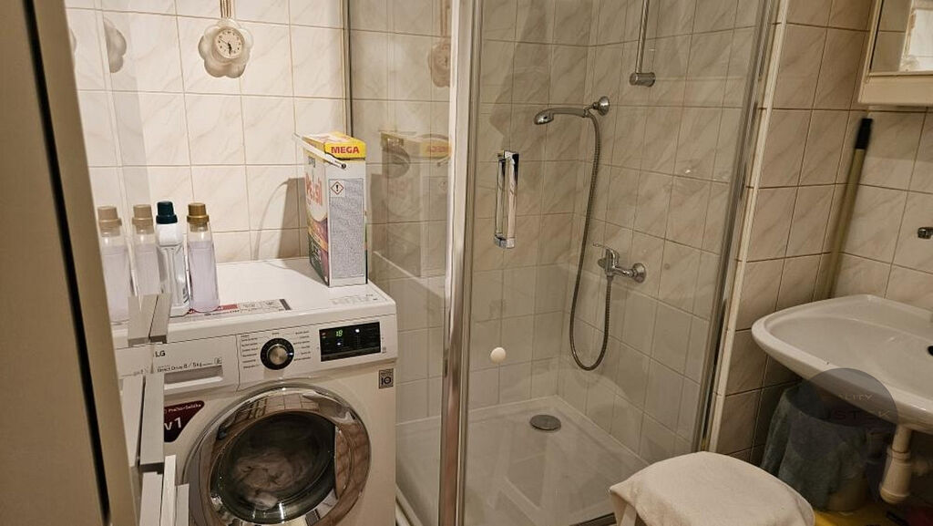 Byt nabízí obývací pokoj se vstupem do ložnice, samostatnou kuchyňku, větší koupelnu s pračkou a toaletou, v předsíni vestavěné skříně.