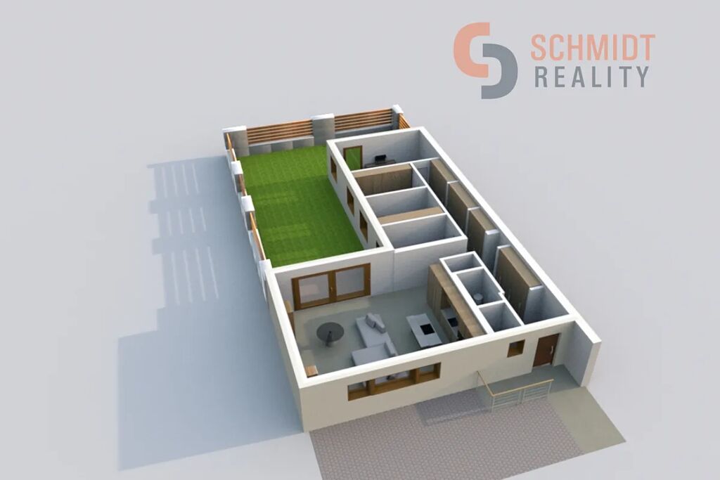 Z obývacího pokoje vede vstup na terasu. Suterén tvoří dvojgaráž, technická místnost a sklep.