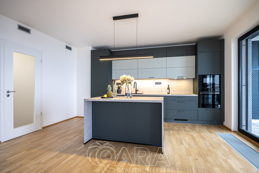 Nabízíme k pronájmu zcela nový, prostorný byt 3+kk (86 m²) s jižní terasou (14,1 m²) v rezidenčním komplexu Zahálka, v Modřanech pár kroků od Vltavy. Byt se nachází v 6. patře a patří k němu sklep a garážové stání umístěné přímo proti vstupu k výtahům.