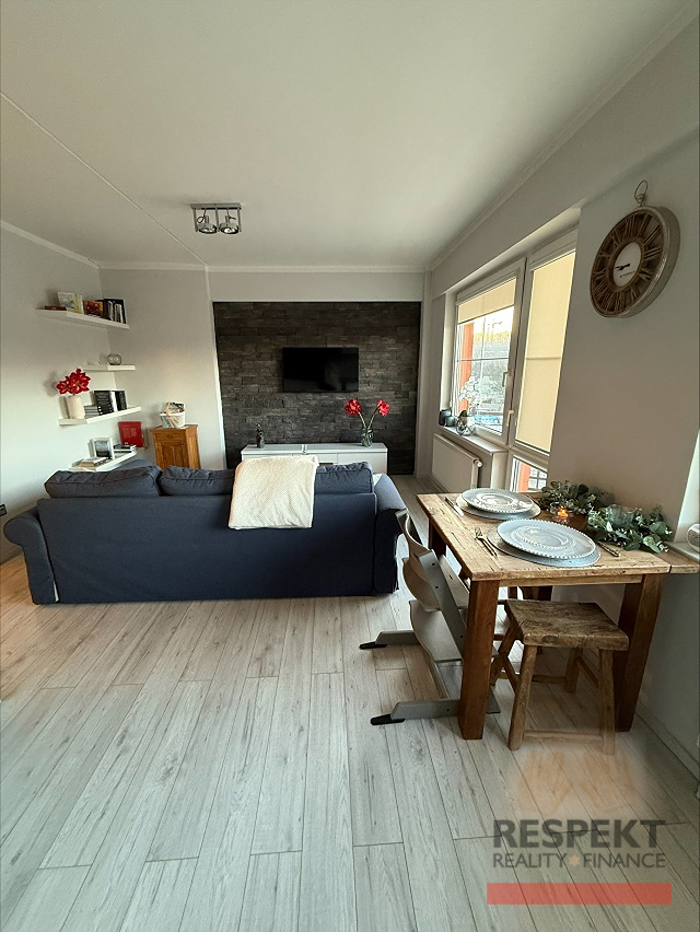 Dispozice bytu byla stavební úpravou změněna na současný stav a nyní je prostorově velmi dobře vyřešena. Z chodby s vestavěným botníkem se vchází do obývacího pokoje, ložnice a koupelny s WC, obývací pokoj je pak propojený s kuchyní, což udělalo byt velmi vzdušným a světlým. Výhodou bytu je vestavěná skříň v ložnici a sklepní kóje, patřící k bytu. Další výhodou je kočárkárna a kolárna v přízemí bytového domu. Bonusem bytu je prostorný balkon s výhledem na oázu zeleně a klidu v zahrádkářské kolonii.