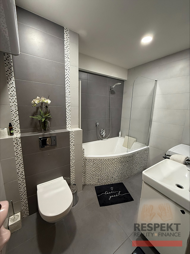 Byt byl před několika lety upraven, rekonstruován a vybaven podle vkusu majitelů mj. materiálem a zařizovacími předměty od renomovaných výrobců (Hans Grohe, Villeroy Boch, Franke, Oresi, aj.): nové rozvody elektro v kuchyni a koupelně, kuchyňská linka se spotřebiči (indukční varná deska, digestoř, vestavná horkovzdušná trouba a mikrovlnná trouba, myčka), koupelna (WC, vana, otopný žebřík, el. bojler, systém změkčení vody, pračka se sušičkou k dispozici), interiérové dveře, položena kvalitní krytina (dlažba, masivní plovoucí laminát), instalovány stínící rolety v pokojích, realizována příprava na zabezpečení alarmem.