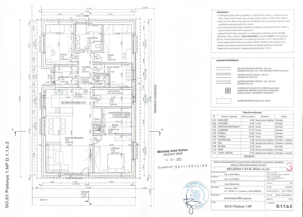 Součástí prodeje je rovněž kompletní projektová dokumentace k rodinnému domu o dispozici 4+kk se samostatnou dílnou a přístřeškem, která je již schválená stavebním úřadem.