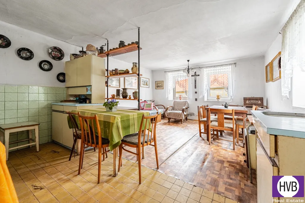 Nabízíme na prodej RD v Oldřichově u Písku. Na pozemku o celkové ploše 3354 m2 se nachází tři stavby. Obytnou část domu o dispozici 2+1 ( 70m2 ) tvoří vstupní chodba, sednice s kuchyní 25 m2, komora, dva pokoje, koupelna s vanou a WC, na ni navazuje garáž a menší stodola. U vjezdových vrat je bývalá sýpka. Za velkou stodolou, která je průjezdná, se nachází zahrada 2178 m2. Stavby jsou v původním stavu včetně obytné části, tudíž nový majitel si může přizpůsobit bydlení svým představám. RD lze napojit na obecní vodovod a kanalizaci ( přípojky před domem v silnici), vytápění momentálně řešeno lokálně, ohřev vody el. bojler, voda ze studny. Oldřichov má novou mateřskou školku, veškerá občanská vybavenost - Písek - 5 min autem, dobré napojení na D4 směr Praha. Více info v RK.
