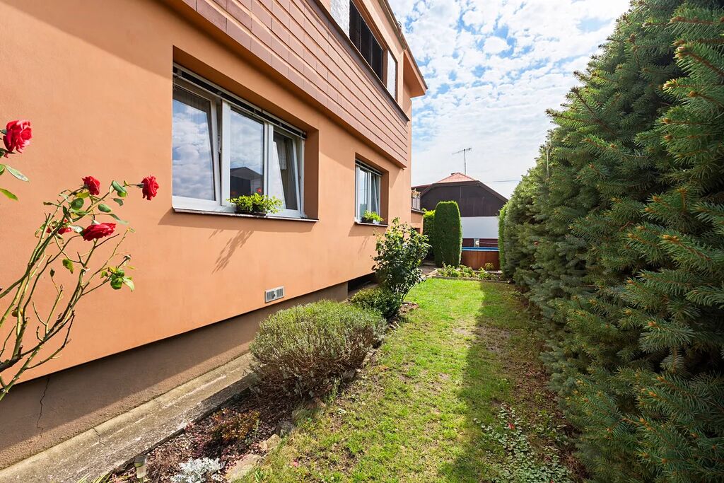 Byt sestává z obývacího pokoje s kuchyňským koutem, dvou ložnic, kde u obývacího pokoje se nachází terasa o výměře 13,4 m2, u jedné ložnice balkon o výměře 3 m2, koupelna s vanou, umyvadlem a WC a předsíň. Zahrada se zastřešeným parkovacím stáním o výměře 74 m2.