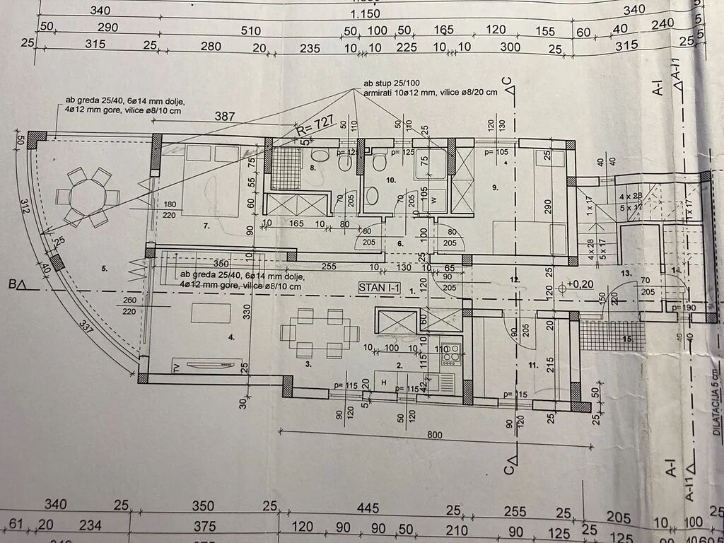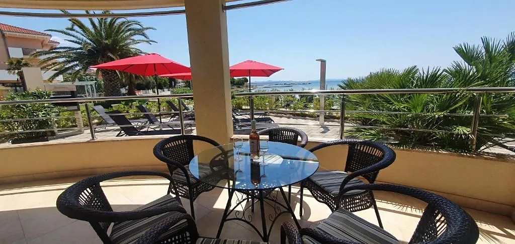 Třípodlažní dům disponuje třemi samostatnými apartmány. V prvním podlaží se nachází technická místnost a apartmán č. 1 o rozloze 80 m2 , který má 2 koupelny, 2 ložnice, obývací pokoj s kuchyní a jídelním koutem s přístupem na terasu a společnou zahradu (pro všechny 3 apartmány) kde lze relaxovat ve stínu slunečníků, osvěžit se zahradní sprchou, pobavit se s přáteli chráněni stínem pergoly nebo si připravit výborné jídlo na grilu. Apartmán č 2. o rozloze 85 m2 se nachází v 1. patře a naleznete zde 2 koupelny, 3 ložnice, obývací pokoj s kuchyní a jídelním koutem s přístupem na terasu. Ve 2. patře je umístěný apartmán č. 3 o rozloze 75 m2 a ten má 1 koupelnu, 2 ložnice, obývací pokoj s kuchyní a jídelním koutem s přístupem na terasu. Terasy jsou prostorné a ze všech je překrásný výhled na moře.