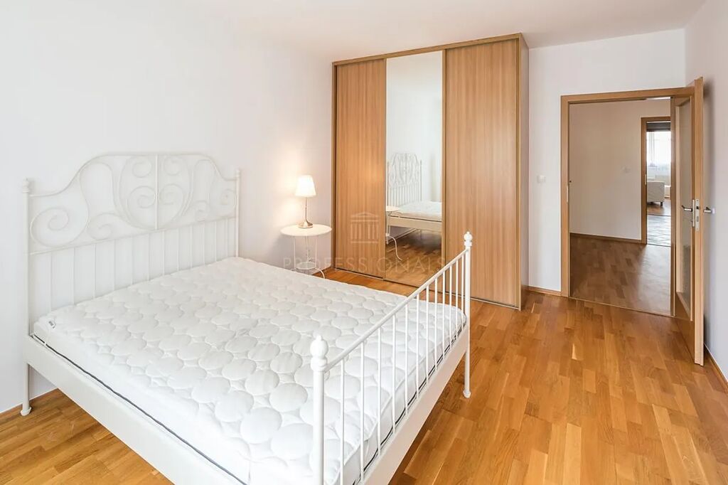 Nabízíme k pronájmu krásný byt 3+kk s podlahovou plochou 113 m², ke kterému náleží balkony o celkové výměře 7,23 m². Byt se nachází ve třetím patře domu s výtahem a vyniká skvělou dispozicí: prostorná vstupní hala, velký obývací pokoj s jídelní částí a oddělenou plně vybavenou kuchyní, dvě ložnice, šatna a koupelna s vanou, sprchovým koutem a toaletou. Balkony s výhledem do zeleně poskytují příjemné místo k odpočinku. Součástí pronájmu je garážové stání v domě. Lokalita nabízí výjimečně klidné bydlení obklopené zelení, zároveň však leží v těsné blízkosti Anděla a všech jeho služeb. V docházkové vzdálenosti je kompletní občanská vybavenost včetně školy a školky. Výbornou dostupnost zajišťuje i blízkost městské hromadné dopravy, kdy zastávky autobusu, tramvaje i stanice metra jsou pohodlně dosažitelné pěšky. V domě je recepce, nepřetržitá bezpečnostní služba a kamerový dohled, které zajišťují maximální komfort a bezpečí. Vedlejší poplatky činí 8000 Kč měsíčně. Byt je k dispozici od 1. ledna 2026.