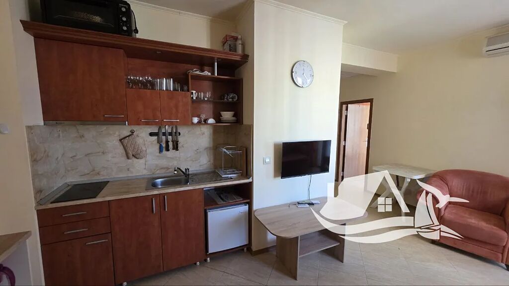 V okolí na vás čekají kavárny, restaurace, trhy i všechny služby, které patří ke spokojenému pobytu u moře. Pláž je vzdálená pouhých 400 metrů a její jemný písek a pozvolný vstup do vody ocení rodiny i ti, kdo touží po klidných dnech u moře. Do aquaparku Action je to jen pár minut a historický Nesebar, zapsaný na seznam UNESCO, je vzdálený pouhé tři kilometry. Dopravní dostupnost zajišťuje pravidelné spojení i blízkost letiště v Burgasu.