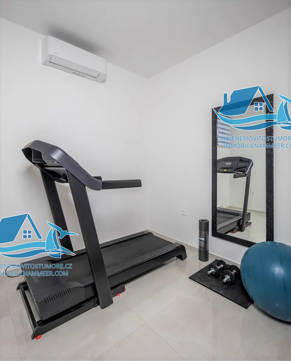 Jedná se o novostavbu. Konstrukce z cihelných tepelných bloků. Pěnový polystyren 8 cm. Podlahové krytiny tvoří dlažba a laminát. Plastová okna se žaluziemi a sítěmi proti hmyzu. V obývacím pokoji jsou elektrické žaluzie. Elektrické podlahové vytápění v obývacím pokoji, tělocvičně a koupelnách. V obývacím pokoji, ložnicích a tělocvičně jsou klimatizace. V domě je také komín, takže si můžete nainstalovat kamna na dřevo nebo krb. Cihlový gril na zahradě a na střešní terase. Zavlažování zahrady.
