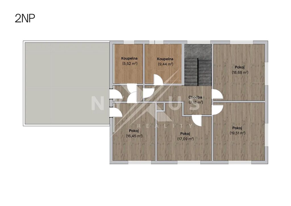 Půda - zateplený prostor o výměře 100 m² nabízí možnost dalšího rozšíření obytného, či využití jako úložného prostoru.