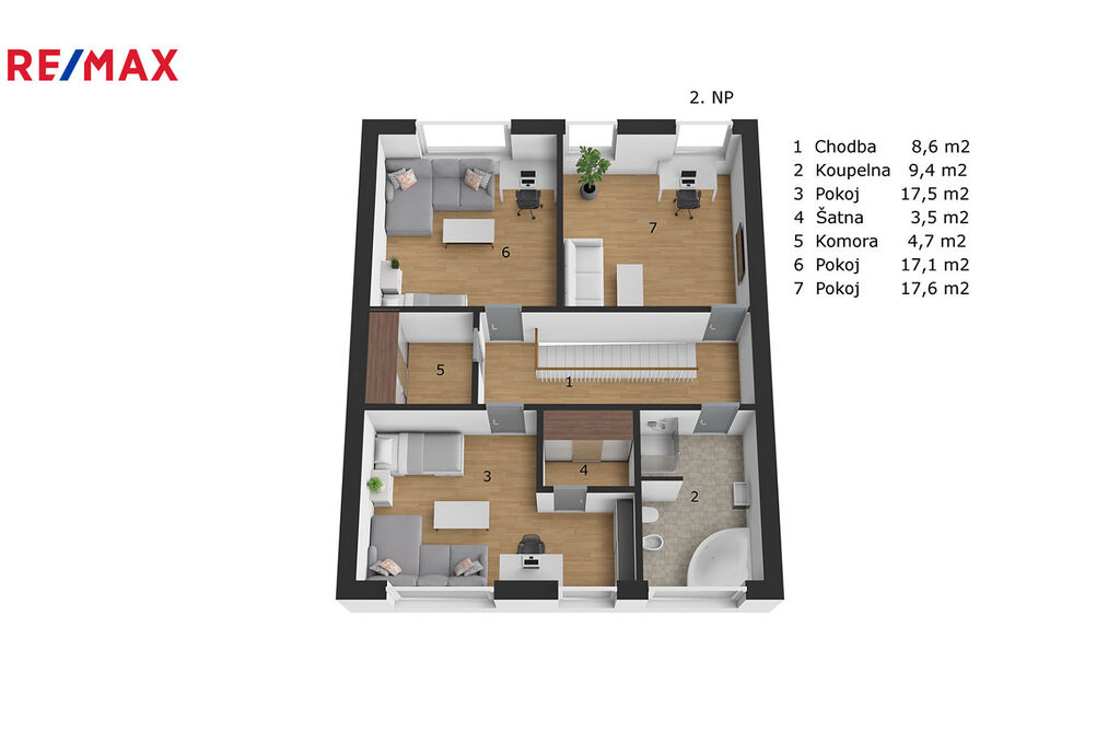 V ceně není dokončení interieru – podlahová krytina, dveře + zárubně, koupelny a WC, kuchyňská linka. Po dohodě lze zajistit dodavatele.