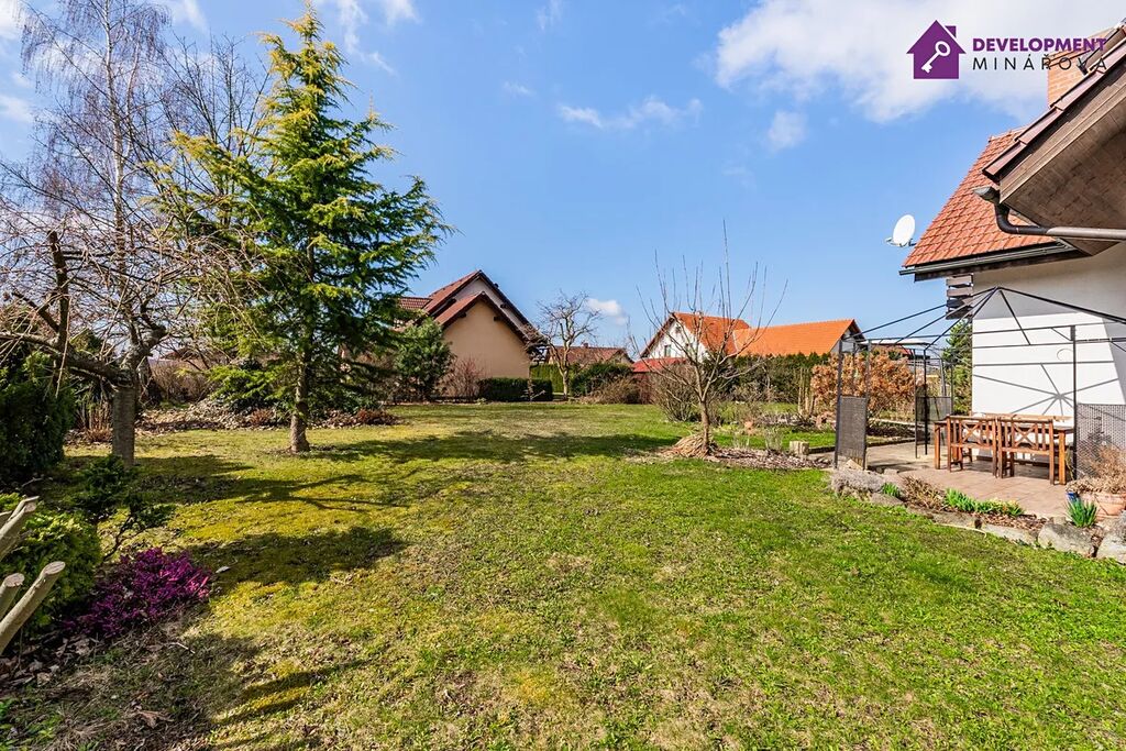 • Dispozice 5+1, užitná plocha 146,22 m², pozemek 1 013 m² - prostorný obývací pokoj s navazující jídelnou, kuchyňský kout, 4 pokoje v patře, 2 koupelny