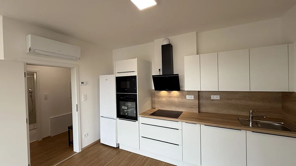 Nabídka pronájmu nově postaveného moderního a plně vybaveného bytu 1+kk, o podlahové ploše 36 m2, s hezkým zařízením, klimatizací a sklepem v suterénu bytového domu, v rezidenci Čechova, v samotném centru Přerova.