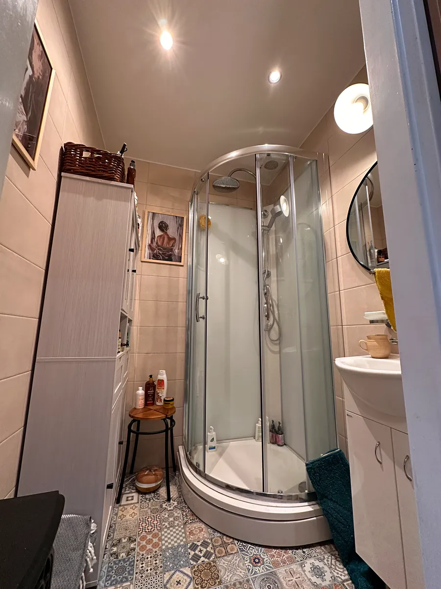 Jádro je zděné, el. v mědi, okna v plastu, strop v chodbě a v koupelně - sádrokarton s bodovým osvětlením. Balkon je zasklen a díky tomu lze využít tento prostor i v zimním období.