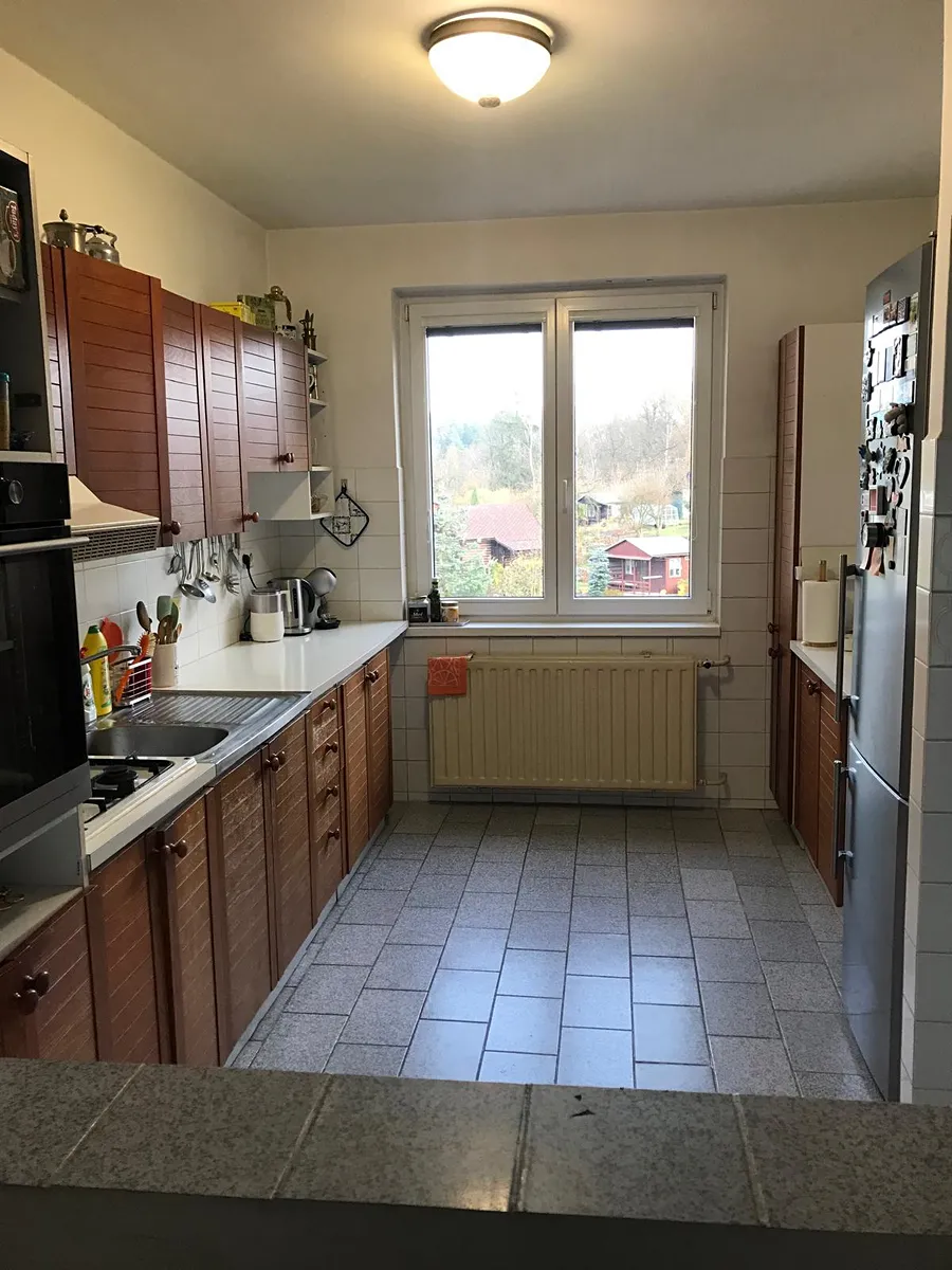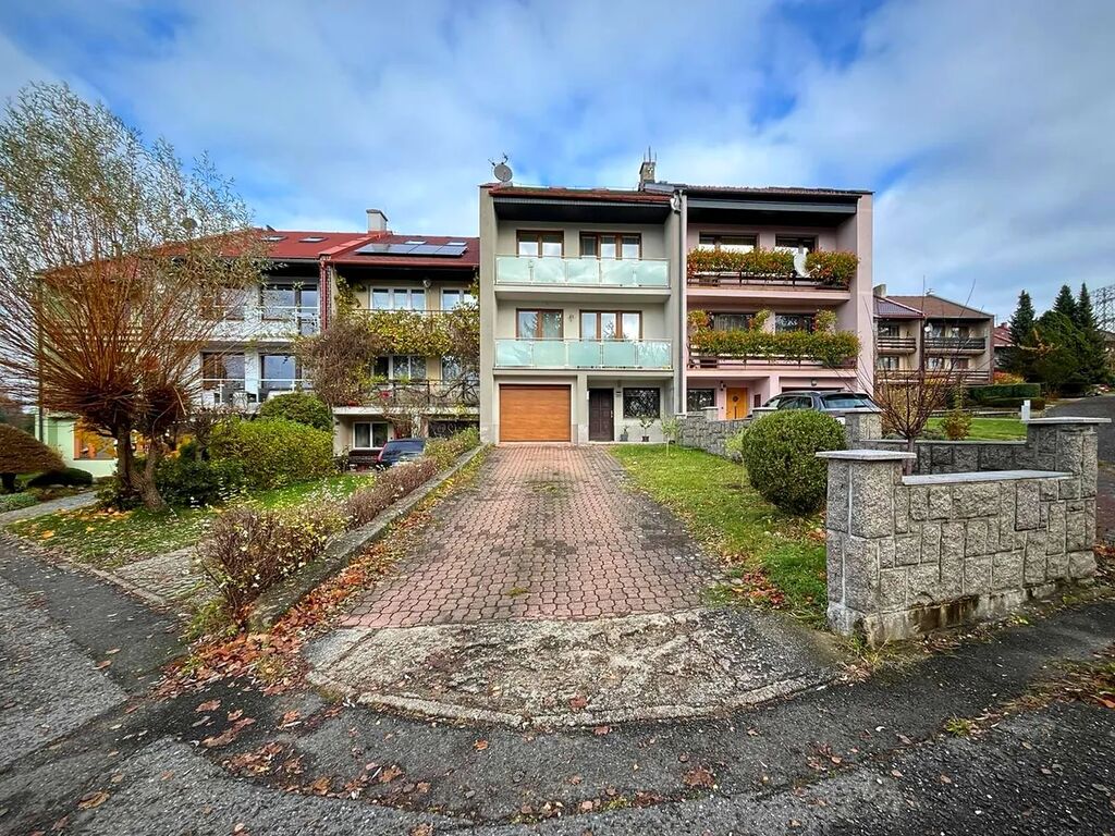 Nabízíme k prodeji velký řadový dům v Liberci - Pavlovicích s výhledem na Ještěd a Jizerské hory. Dům byl postaven v roce 1990 a je zděný o třech obytných podlažích s garáží v přízemí domu. Součástí je předzahrádka s příjezdovou cestou 66 m2 a oplocená udržovaná zahrádka 165 m2. Na domě proběhla výměna oken za plastová, renovace balkónů a fasády na čele budovy. Vytápění je novým plynovým kotlem s rozvody do radiátorů. Dispozice domu jsou garáž, kotelna a prádelna v přízemí, ve 2.NP je kuchyň, jídelna, obývací pokoj s funkčním krbem, koupelna s vanou a toaletou. Ve 3.NP jsou 4 pokoje, koupelna se sprchou a toaleta. Půda nabízí možnost obývání. Ve všech pokojích jsou dřevěné parkety. Kuchyň, chodby, koupelny - dlažba. Patra spojuje dřevěné schodiště. Jedná se o žádanou lokalitu Ruprechtice - Pavlovice s výbornou dopravní obslužností do centra i na rychlostní komunikaci. Zastávka MHD v blízkosti domu. V místě je kompletní občanská vybavenost. Součástí prodeje je i veškerý vnitřní nábytek. Pro více informací a prohlídku celého domu nás neváhejte kontaktovat. Vzhledem k tomu, že před vytvořením prezentace nebyl majitelem dodán platný PENB, je tato nemovitost v souladu se zákonem dočasně zařazena do poslední energetické třídy G.
