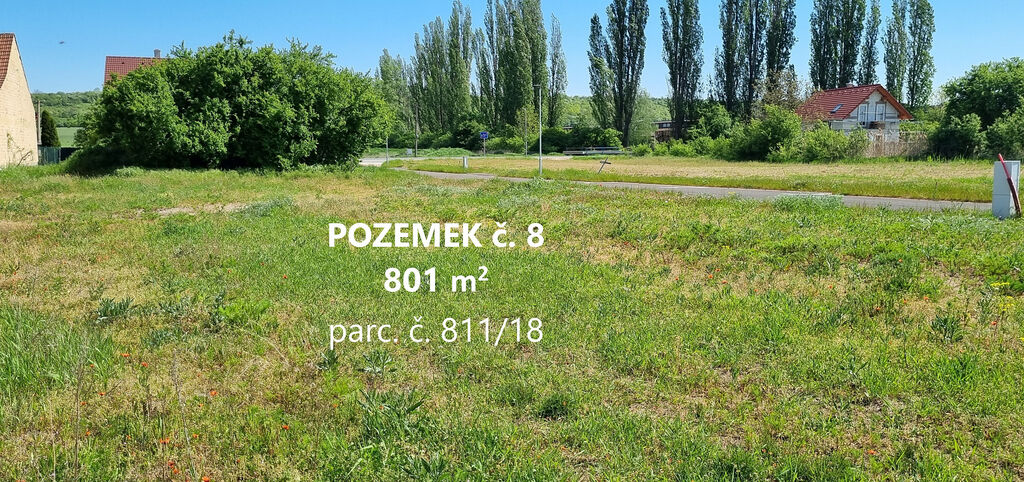 Stavební pozemek 803 m² pro stavbu RD včetně připraveného napojení (přípojek) a nové příjezdové asfaltové komunikace s veřejným osvětlením; připravený vjezd až na parcelu.