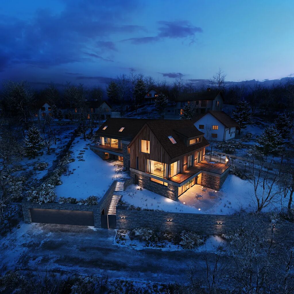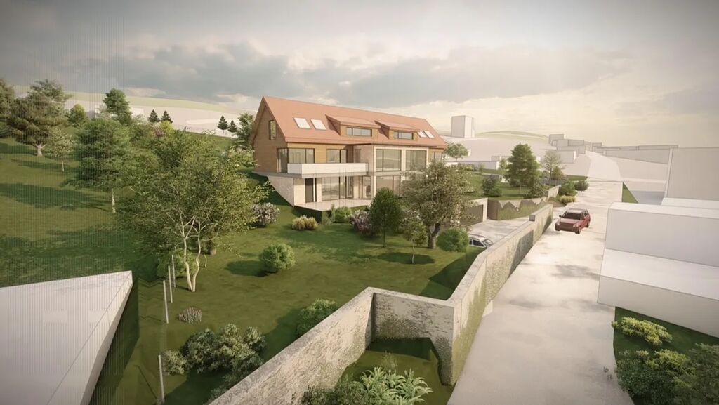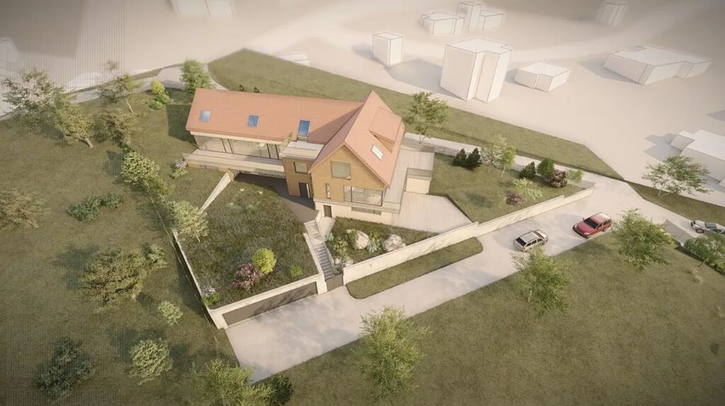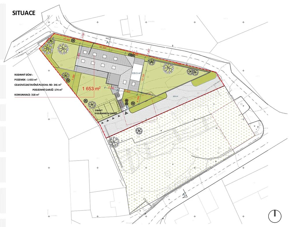 Na pozemku (parcela St. 51 o výměře 2.007m2), je navržena jedinečná luxusni solitérní vila s jedním polozapuštěným a dvěma nadzemními podlažími, garáží pro 5 automobilů, posilovnou, vnitřním bazénem s wellness a barem – vše o celkové podlahové ploše 775m2.