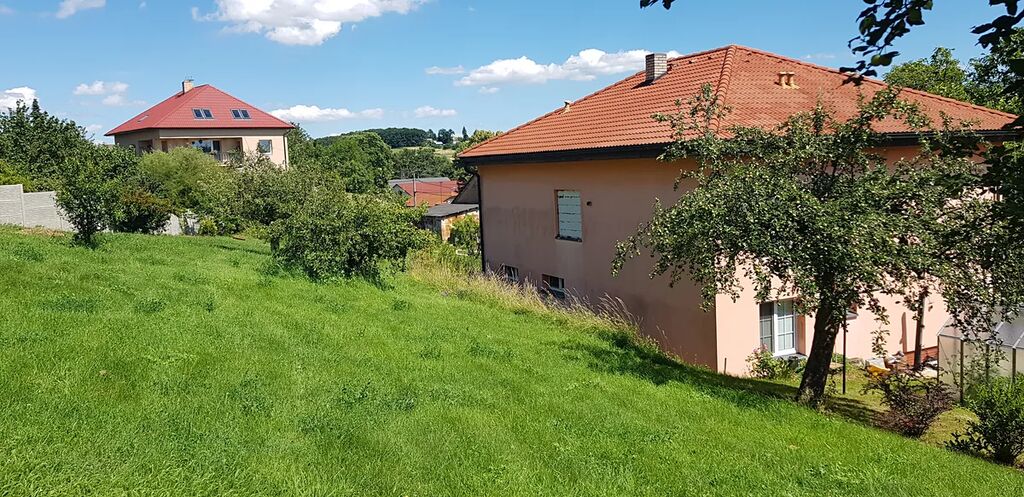 Svažitá parcela (parcela St. 51) o výměře 2.007m2, kdy se na tomto pozemku nachází starší zděný rodinný dům).