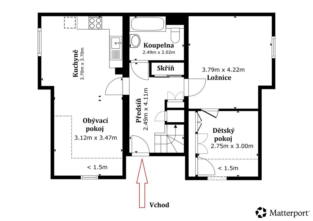 Byt působí vzdušně a nabízí přirozené propojení všech místností. Na hlavní úrovni najdete obývací pokoj s kuchyňským koutem, dva samostatné pokoje, koupelnu s vanou a prostornou vstupní halu s úložnými prostory. V horním patře mezonetu se nachází útulná galerie vhodná jako ložnice či pracovna. Byt je ve výborném technickém stavu, bez nutnosti dalších úprav.