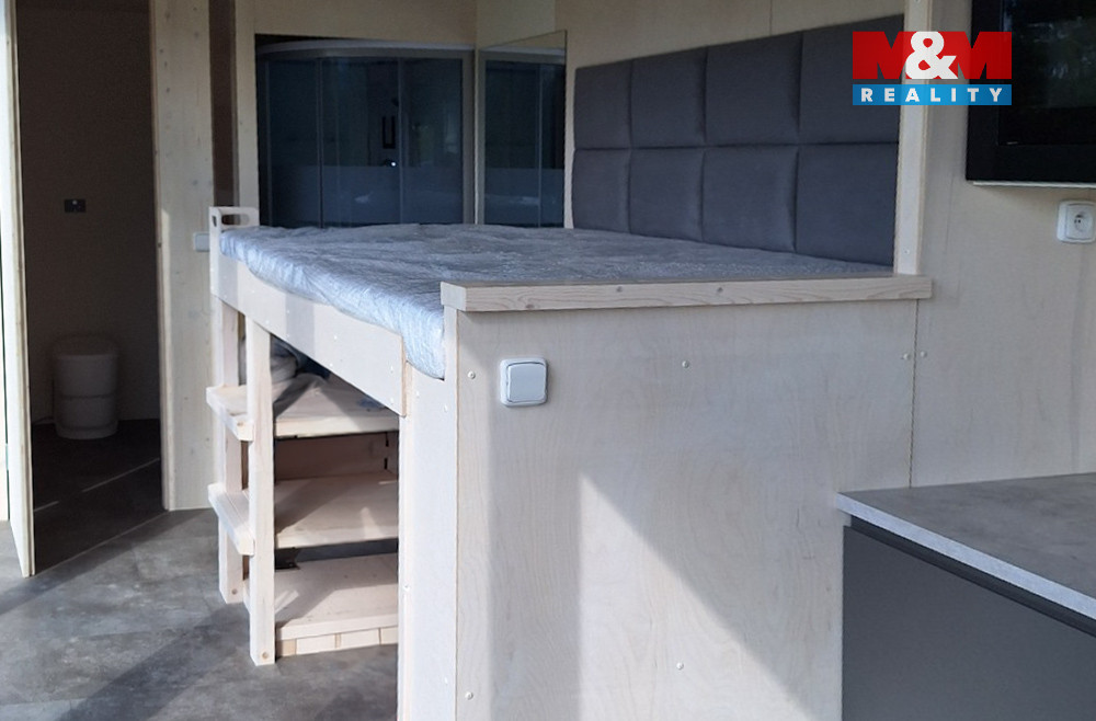 Nabízíme unikátní možnost moderního a komfortního bydlení v plně vybaveném glamping kontejneru, ideálním pro rekreační využití i celoroční bydlení. Interiér je promyšlený do posledního detailu – najdete zde masážní sprchu, separační toaletu, plně vybavenou kuchyň s myčkou, lednicí a úložnými prostory.