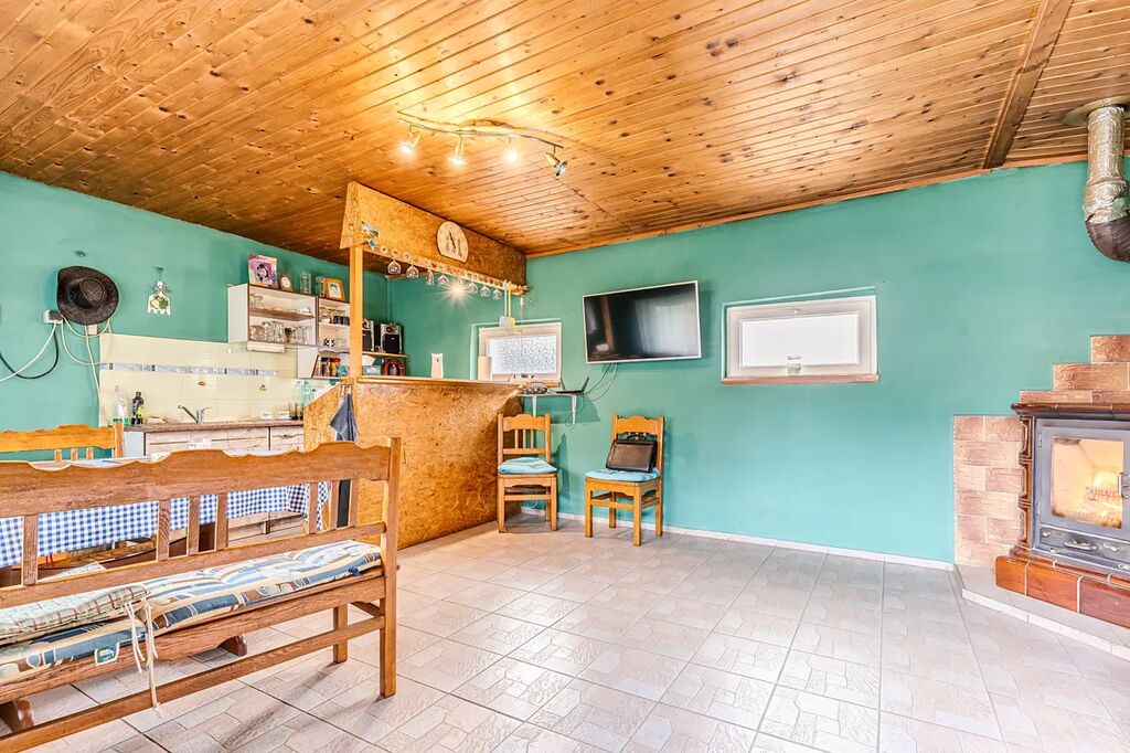 Na dům je napojena přístavba, ve které se nachází společenská místnost s vlastním vstupem, elektřinou, vytápěním a přívodem vody. Tuto místnost lze taktéž využít jako další prostor k ubytování s vlastním zázemím. V přístavbě se také nachází uzavíratelná garáž pro dvě vozidla. Dům je napojen na vodovod.
