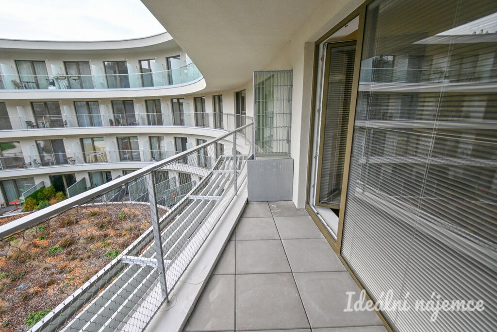 K bytu náleží garážové stání v ceně nájmu, umístěné v podzemních garážích rezidence. Součástí je také sklep.