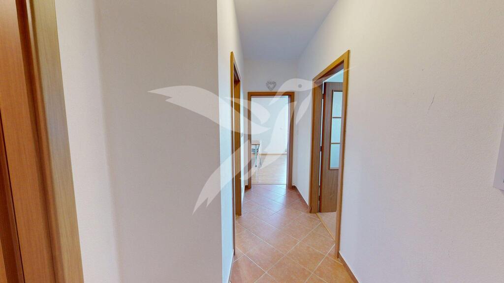 Nemovitost o dispozici 2+kk a velikosti 52 m2 se nachází ve 3. NP cihlového domu s výtahem a skládá se z předsíně, samostatného pokoje, pokoje vč. kuchyňské linky, koupelny s toaletou, komory, dále je k užití prostorný zděný sklep v suterénu a parkovací stání u domu.