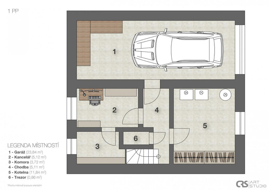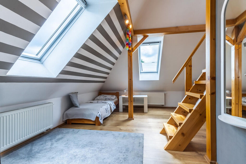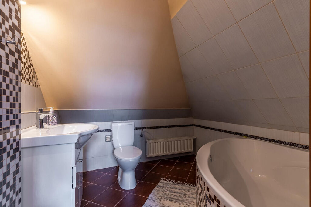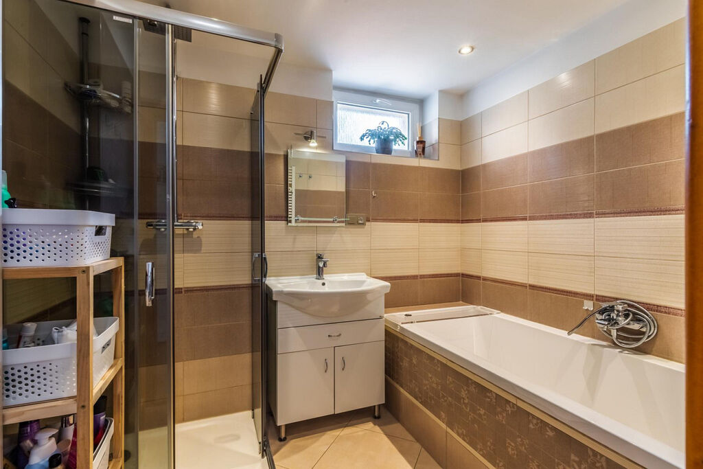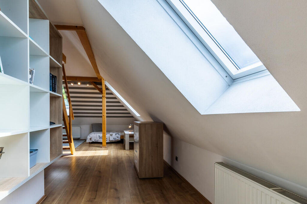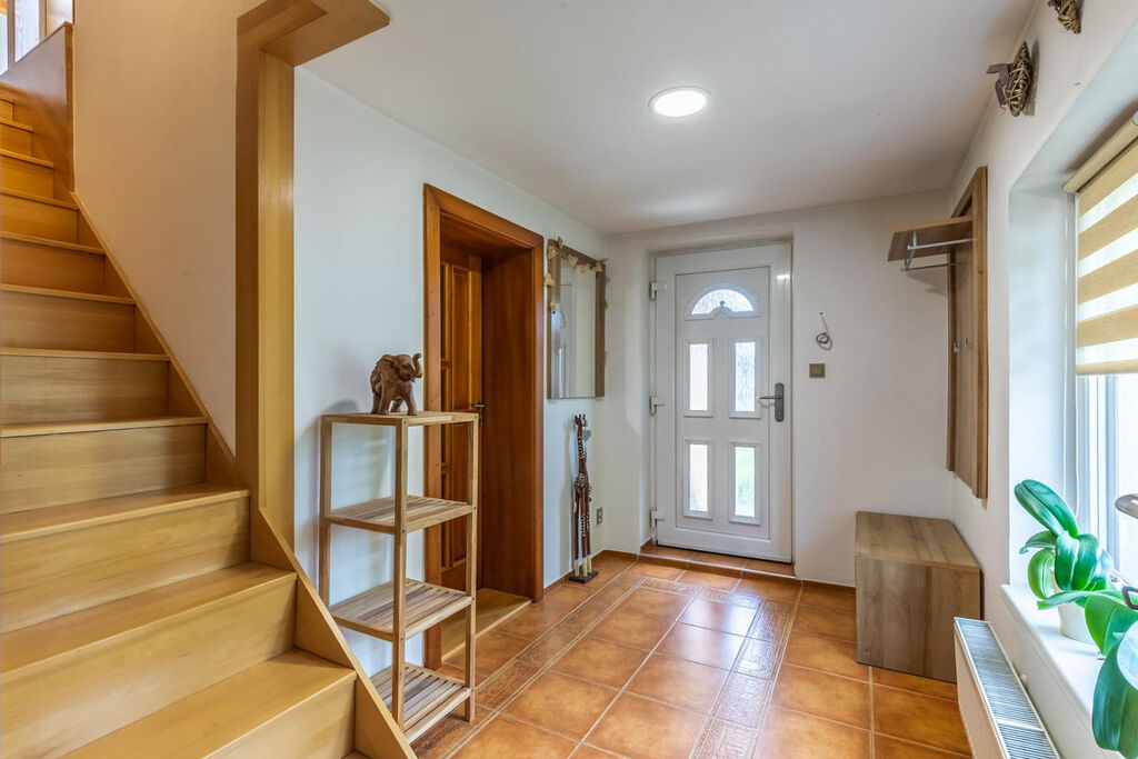 - Dvě koupelny, jedna v přízemí, druhá v podkroví (s WC)