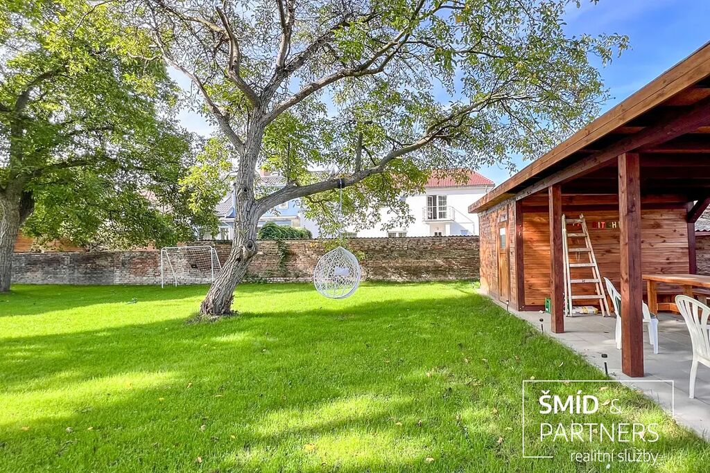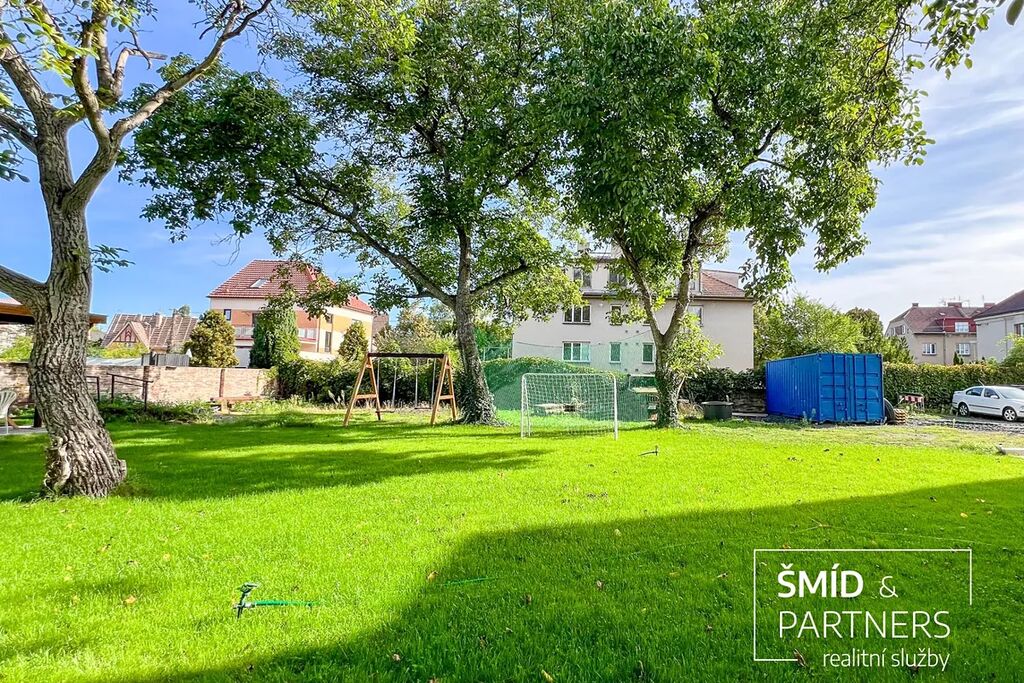 Kompletní rekonstrukce domu proběhla před dvěma lety, nově vznikly tři byty, ateliér, kanceláře a sauna. Byt je díky velkým Eurooknům a světlému interiéru příjemně prosluněný. Výhled do zahrady, která je stejně jako sauna k dispozici všem vlastníkům jednotek, je příjemným výhledem do zeleně. Byt je prostorný a je zde jasně vidět spolupráce s architektkou, vznikl velice vkusný a praktický byt, s obývacím pokojem a kuchyní, ložnice, koupelna s WC a komora. Kuchyň je vybavena troubou, mikrovlnou troubou, lednicí, myčkou a indukcí. Nejčastěji používaný materiál je zde dřevo, vč. podlahové krytiny, díky tomu působí byt příjemným a teplým dojmem. V ložnici je položený koberec. Celkově byl při rekonstrukci domu kladen důraz na kvalitu použitých materiálů.