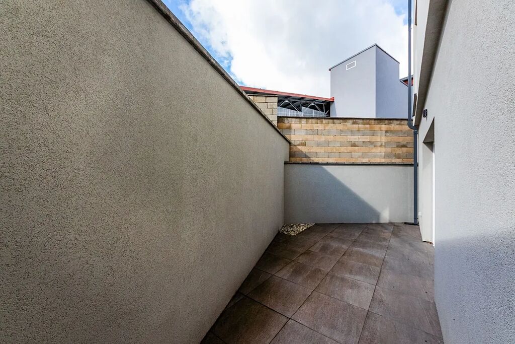Moderně řešená novostavba bytového domu nabízí celkem osm bytových jednotek, parkoviště a společnou zahradu.