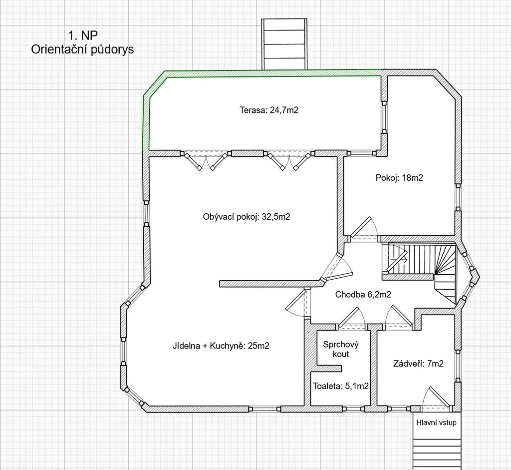- jídelna propojená s kuchyní a obývacím pokojem,