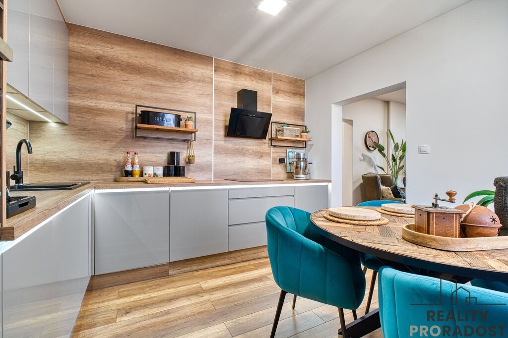 Technický stav bytu - byt prošel před pár lety kompletní rekonstrukcí (nová elektroinstalace včetně nového rozvaděče, vše má svůj vlastní okruh, vyzdění bytového jádra, rekonstrukce rozvodů vody, vytvoření ventilace, SDK podhledů, aplikaci keramické dlažby, instalaci sanity, sjednocení nášlapových vrstev podlah, aplikace sádrové omítky a stěrky, instalace LED osvětlení včetně LED pásků do koupelny a obývacího pokoje, pokládka kvalitní podlahy, instalaci interiérových dveří a dále montáž kuchyňské linky a vestavěných spotřebičů) včetně změny dispozice. Byt je v perfektním stavu. Vybavovací předměty (nábytek) není předmětem prodeje.