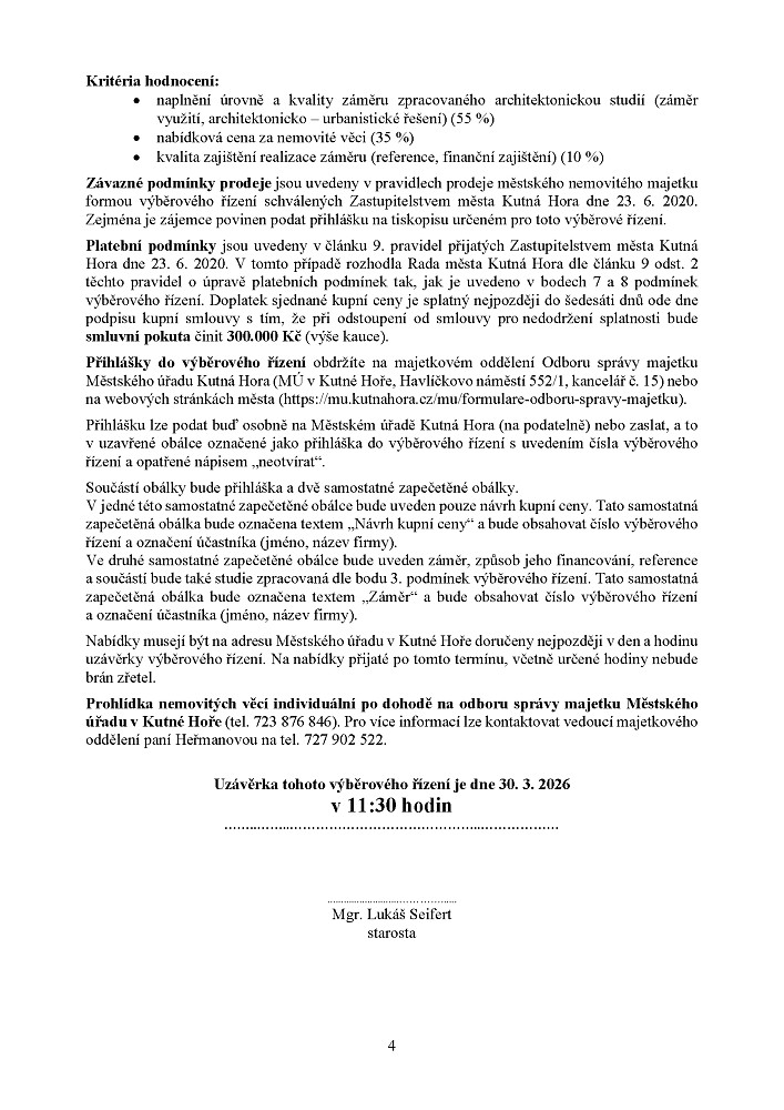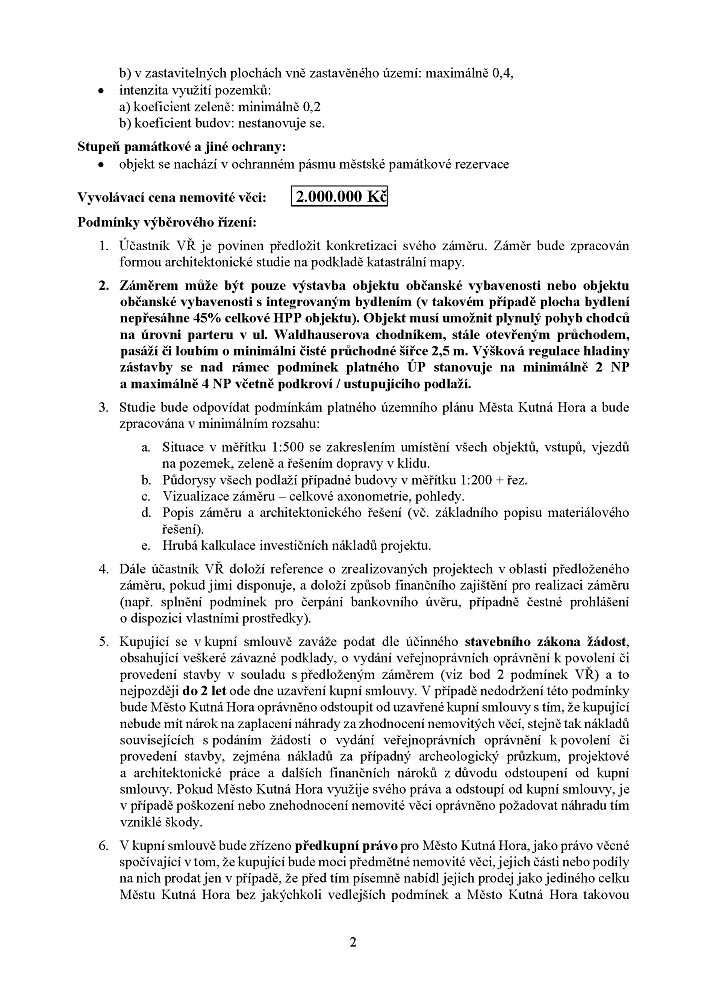 Město Kutná Hora nabízí k prodeji část pozemku p. č. 1977/15 (ostatní plocha, jiná plocha) o výměře 277 m² a část pozemku p. č. 1977/16 (ostatní plocha, jiná plocha) o výměře 343 m², oba v k. ú. Kutná Hora, včetně inženýrských sítí a všech součástí a příslušenství. (Dle GP č. 4624-225/2024 ze dne 25. 11. 2024 pozemek p. č. 1977/16 o výměře 620 m².)