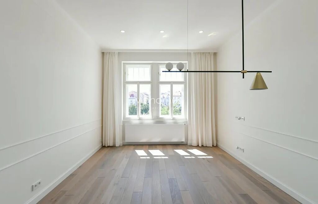 Zařízený, klimatizovaný byt ve 4. patře kompletně zrekonstruované činžovní budovy v secesním stylu, v jedné z nejžádanějších částí Prahy, přímo na Náměstí Jiřího z Poděbrad. Budete okouzleni výhledem na avantgardní architektonickou stavbu kostela Nejsvětějšího srdce Páně, osobité dílo slovinského architekta Jože Plečnika a celé náměstí s typickou energií a atmosférou Vinohrad. Najdete zde jak významná nákupní centra např. Palác Flóra a Vinohradský pavilon pro Vaše pohodlné nákupy, tak i divadla (Divadlo na Vinohradech, Smetanovo divadlo), parky a vyhlídky, možnosti k posezení v četných restauracích a kavárnách. Farmářské trhy jsou neoddělitelnou součástí života v této čtvrti a svou atmosférou lákají obyvatele celé Prahy k pravidelné návštěvě. Díky výhodnému dopravnímu spojení se brzy dostanete do samotného centra města, ale i za jeho hranice, a to jak automobilem tak MHD. Stanice metra A .