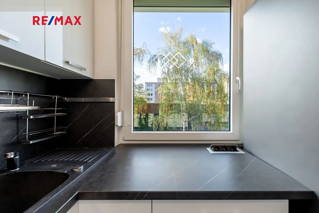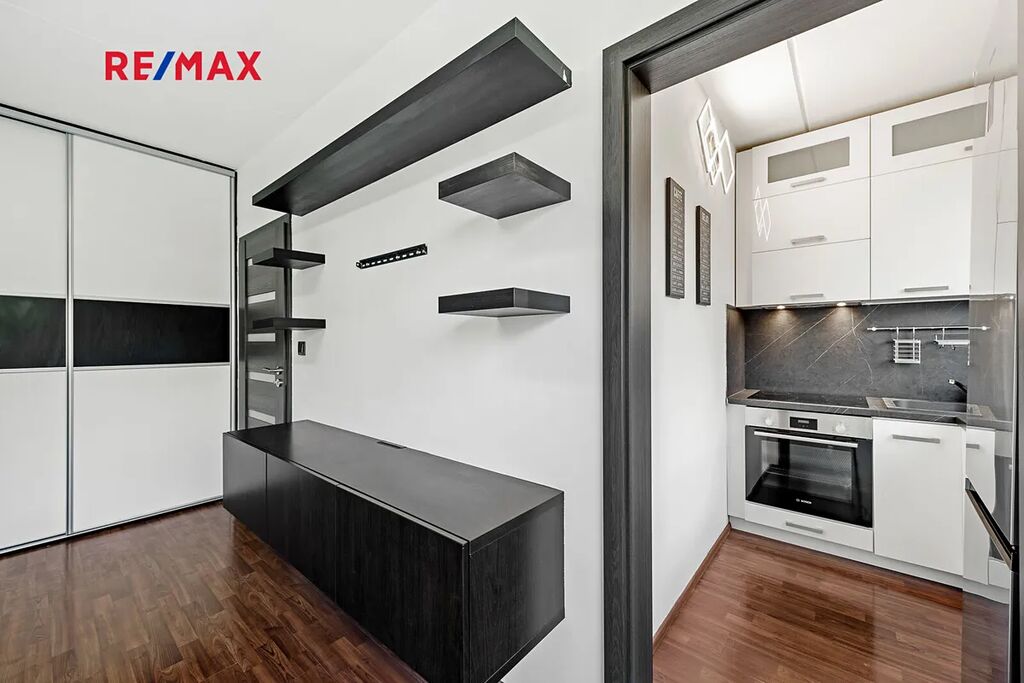 Byt je volný k nastěhování ihned a pronajímá se částečně zařízený. Byt se nachází v domě s výtahem a obsahuje prostornou vestavěnou skříň v pokoji a předsíni. Kuchyňská linka je vybavena elektrickou varnou deskou, lednicí s mrazákem a troubou. V koupelně je pračka, a v bytě je také trezor. K bytu náleží sklepní kóje, a parkování je možné před domem.