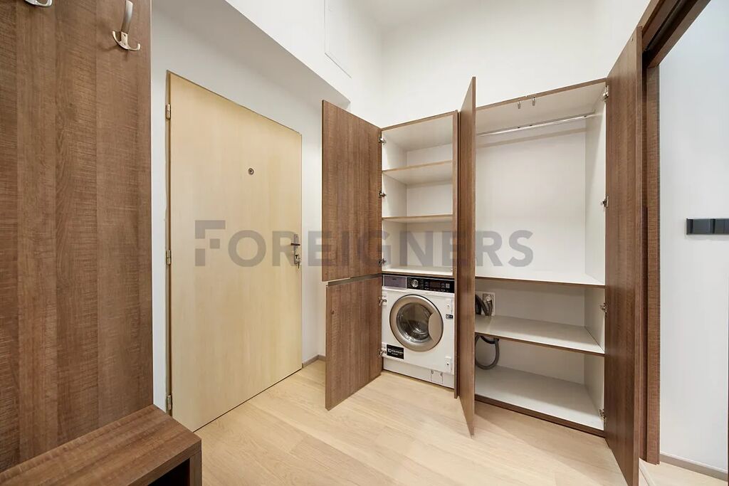Koupelna je vybavena sprchovým koutem, umyvadlem a toaletou, přičemž pračka je umístěna v předsíni.