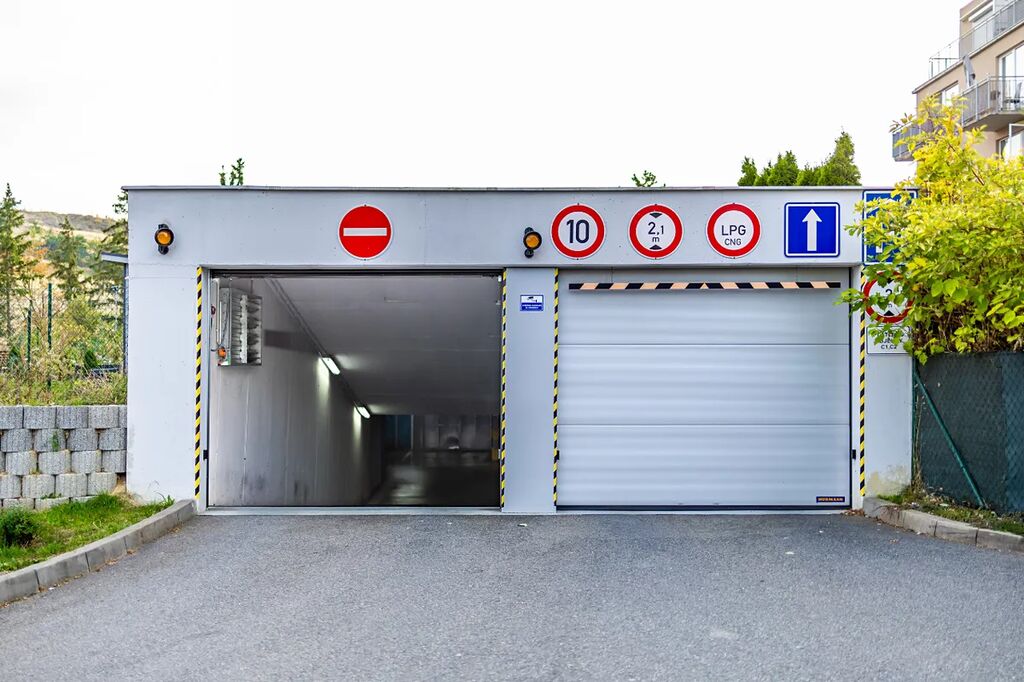 K bytu patří parkovací místo (10,65 m2) a kóje na jízdní kola (0,78 x 2,5 m – 1,95 m2) za park. místem v suterénu domu. Na zahradě je plechový domek na nářadí a kola. Terasa byla rozšířena k venkovnímu posezení.